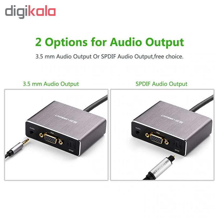 مبدل HDMI به VGA برند UGREEN مدل 40282 دارای ورودی پاور (Micro USB) است که بیشتر در دستگاههای با خروجی رزولوشن بالا استفاده میشود و به راحتی از دستگاههای حرفه ای مثل PS4 و NVR و DVR و PS3 و XBOX و مینی کامپیوتر … با حداکثر رزولوشن 1080 تصویر پشتیبانی میکند. از ویژگی منحصر به فرد این تبدیل میتوان به خروجی Optical آن نام برد. توسط این مبدل میتوان از دستگاه هایی همچون Blu-Ray علاوه بر خروجی تصویر ، خروجی با پشتیبانی از صدای دالبی گرفت و به دستگاههای پخش کننده حرفه ای متصل کرد. مبدل HDMI به VGA برند UGREEN مدل 40282 با ظاهری زیبا و مستحکم دارای بهترین کیفیت ساخت و بالاترین سطح خروجی رزولوشن تصویر میباشد و همچنین دارای خروجی صدای اپتیکال (SPDIF) و AUX است و میتوانید صدای خروجی را به اسپیکر و یا هدست با پورت مربوطه متصل کنید. از این تبدیل بیشتر در مکانهایی که کارکرد مداوم با این تبدیل را دارند مانند مدارس ، آمفی تئاتر ، دانشگاه و یا دستگاه هایی که دارای دقت و رزولوشن بالا هستند مانند محصولات مک اپل و دستگاههای بازی حرفه ای مثل PS4 , PS3 , XBOX و … بیشتر استفاده میشود.