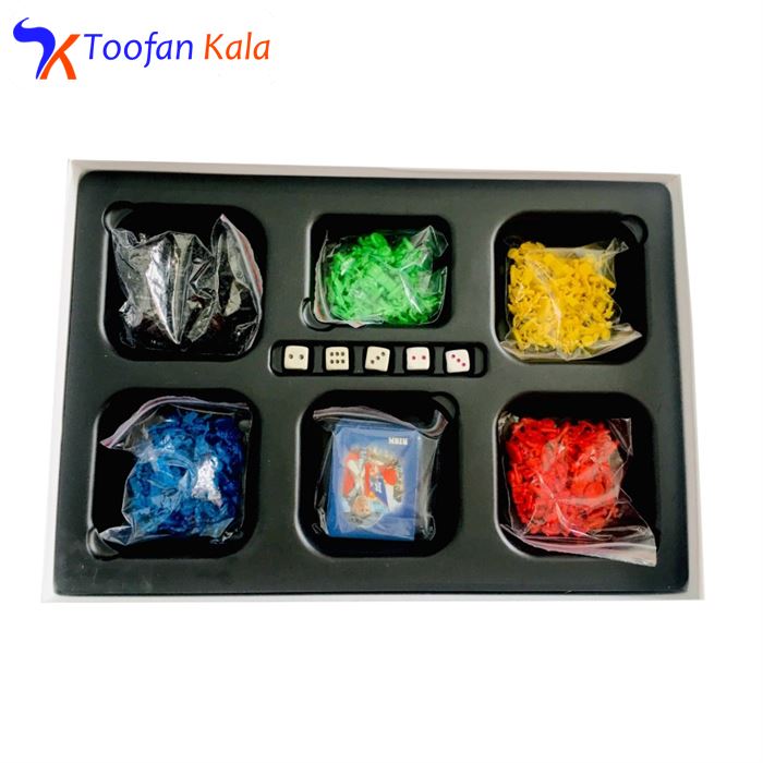 مهره های ارتش 5 سری کارت بازی 56 عدد کارت راهنما 2 عدد تاس 5 عدد راهنمای بازی 1 عدد |