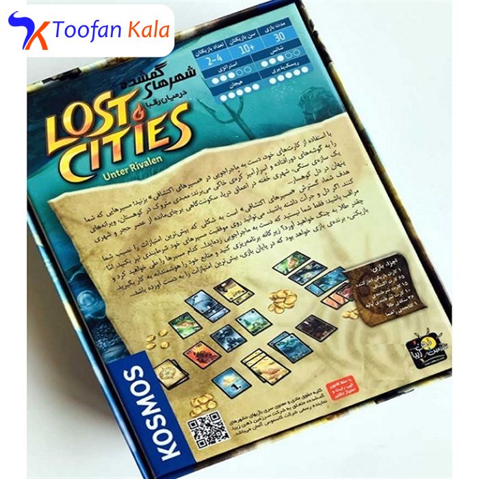 بازی Lost Cities Unter Rivalen یا شهرهای گم شده نسخه در میان رُقبا یک بازی خانوادگی زیباست بار دیگر، زمان سفر به سرزمینهای دوردست فرا رسیدهاست... امّا در لاست سیتیز: رُقبا، ممکن است شما پول نقد کافی برای رفتن به سفرهایی که میخواهید، نداشته باشید. روند بازی، مشابه سایر بازیهای خانوادهی لاست سیتیز است؛ شما کارتهای رنگین اکتشاف را جمعآوری کرده و بهترتیب، از کوچک به بزرگ، پیشِروی خود میچینید و با استفاده از کارتهای شرطبندی، ارزشِ اکتشافاتِ خود را بالا میبرید. مهمترین تفاوتِ این نسخه با سایرِ نسخههای لاست سیتیز، این است که شما برای بهدست آوردن کارتهای اکتشاف، باید در حراج برنده شوید و برنده شدن در حراج نیز احتیاج به پول دارد... با استفاده از کارتهای خود، دست به ماجراجویی در «مسیرهای اکتشافی» بزنید؛ مسیرهایی که شما را به گوشههای دوراُفتاده و اسرارآمیز کُرهی خاکی میبَرند: معبدی متروک در کوهستان، ویرانههای یک سازهی سنگی، شهری خُفته در اعماق دریا، سکونتگاهی برجایمانده از عصر حجر و شهری پنهان در دل کوهسار... هدف شما، گسترش «مسیرهای اکتشافی» است به شکلی که بیشترین امتیازات را نصیب شما کنند. اگر دل و جرأت داشته باشید، میتوانید روی موفقیت مسیرهای خود شرطبندی نیز بکنید. امّا مراقب باشید: فقط شما نیستید که دست به ماجراجویی زدهاید!... کدام مسیرها را طی خواهید کرد و چقدر طلا به چنگ خواهید آورد؟ زیرکانه برنامهریزی کنید و منابع خود را هوشمندانه به کار بگیرید. بازیکنی، برندهی بازی خواهد بود که در پایان بازی، بیشترین امتیازات را به دست آورده باشد