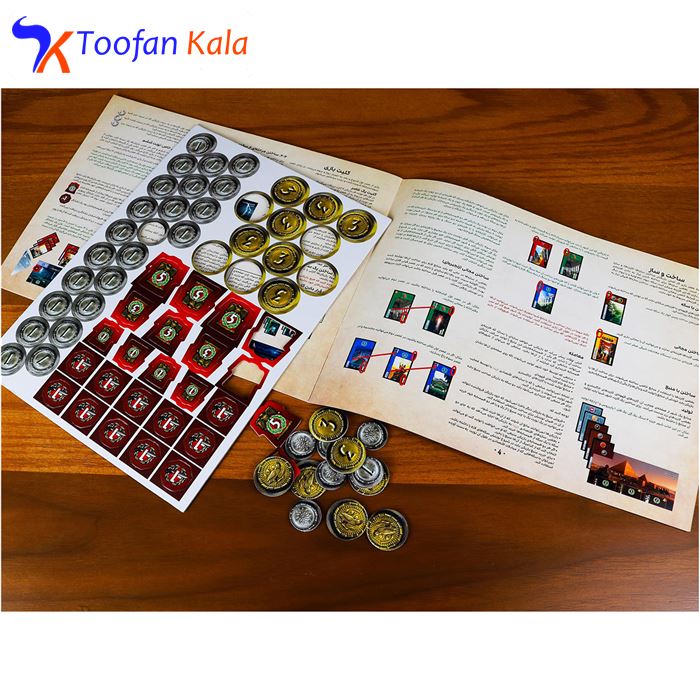 7 کارت عجایب جهان 148 کارت بازی در 3 دوره بیش از 120 توکن مقوایی دفترچه امتیاز شماری دفترچه راهنمای فارسی |