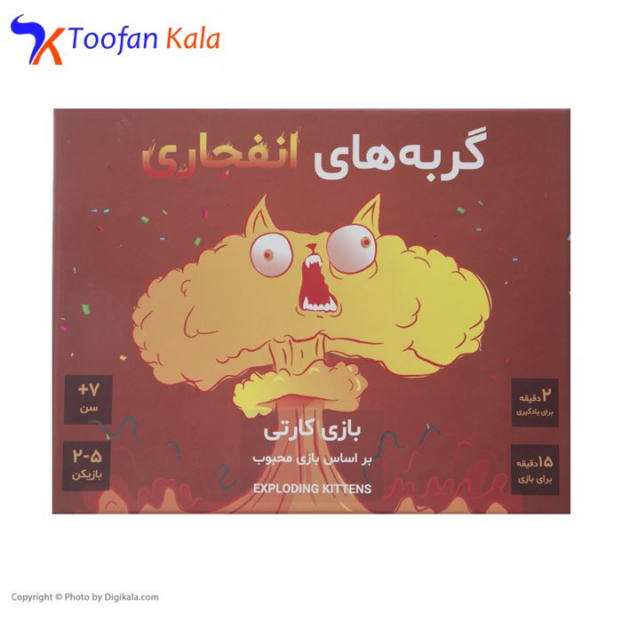 گربههای انفجاری یک بازی استراتژیک و ریسکی شبیه به بازی رولت روسی است. بازیکنان تا زمانی که یک نفر کارت گربه منفجره را بردارد، از مخزن کارت برمیدارند. اگر کسی کارت گربه منفجره را برداشت، منفجر میشود؛ مگر اینکه کارت خنثی کننده داشته باشد. بقیهی کارتهای مخرن برای جابهجایی یا جلوگیری از برداشتن کارت گربه منفجره استفاده میشود. این بازی با طراحی جذاب کارتها و گیمپلی سریع به محبوبیت بسیاری دست یافته است. اگر شما تجربهی بازی UNO را داشته باشید، حتما از این بازی لذت خواهید برد. این بازی برگردان کامل بازی Exploding Kittens است. بازی فکری فندقچه مدل گربههای انفجاری مناسب رده سنی کودک، نوجوان و بزرگسال است. تعداد افرادی که میتوانند این بازی مهیج را انجام دهند ۴ نفر است. گفتنی است این بازی کمتر از یک ساعت زمان میبرد و سرگرمی مناسبی برای دورهمیهای دوستانه است.