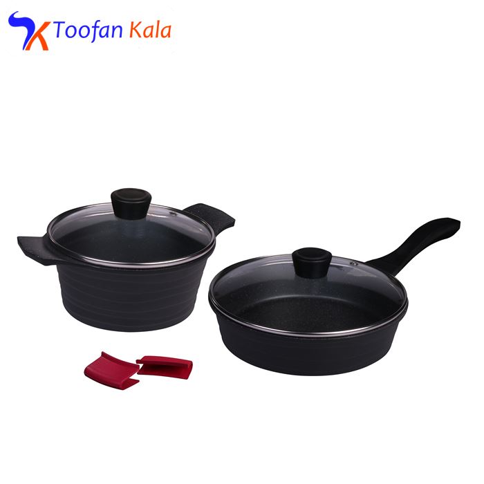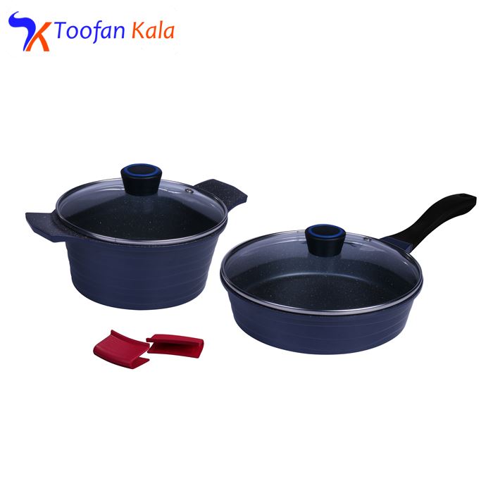 سرویس پخت و پز 6 پارچه تکنو مدل ونوس باجای گیری کم و اقلامی مختصر، کاربردی و مقرون به صرفه مناسب برای خانوادههای دو تا چهار نفره است. خطوط مواج نقش بسته بر روی بدنهی سرویس یادآور امواج دریاست است که دلیل نام گذاری این سرویس نیز به این نام همین است. (ونوس به معنی الهه آب و دریا ) طرح و نقش زیبا همراه با طراحی و ساخت استاندار زیر نظر کادری مجرب با آخرین متد روز دنیا آرامش را مهمان آشپزخانههای شما خواهد کرد. اگر به دنبال یک سرویس پخت و پز ایدئال هستید که به طور روزانه مورد استفاده قرار گیرد، این مدل را به شما پیشنهاد میکنیم. سرویس 6 پارچه تکنو از بدنه آلومینیوم مقاوم برای پخش یکدست گرما با روکش گرانیت 2 لایه ساخته شده است که امکان طبخ غذایی سالم با پختی کامل را برای خانواده فراهم میکند. درپوشهای این سرویس از شیشه هستند و با استانداردترین شکل ممکن ساخته شده تا بهترین کارایی را ارائه نماید، با شیشه محدب و قابلیت تحمل حرارت بالا قادر خواهید بود در حین پخت غذا محتویات ظرف را هم مشاهده کنید. دیگر مزیت این ظروف داشتن رو دری (قپه) باکالیت نسوز است که حین پخت باعث سهولت استفاده است . این سرویس شامل یک قابلمه دو دسته سایز 20 و یک تابه تک دسته سایز 24 و 2 عدد دستگیرهی سیلیکونی نسوز خوش رنگ و خوش دست به عنوان هدیه است. بهتر است برای شستوشوی کلیه ظروف گرانیت از ابری نرم به همراه مایع ظرفشویی استفاده شود. دستگیرههای این سرویس طوری طراحی شده است که امکان گذاشتن ظرف داخل فر و یا مایکروفر و یا گرمکن وجود داشته باشد. جنس دستگیره این سرویس با جنس به کار رفته در بدنه (چدن) همسان بوده و در نتیجه هرگز دستگیرهها آسیب نمیبینند. ادغام جنس دستگیره با بدنه علاوه بر محافظت آن در برابر حرارت مستقیم موجب زیبایی منحصر بفرد آن نیز شده است. لازم به ذکر است، دقت داشته باشیم دمای محیطی که برای گرم کردن (داخل فر، مایکروفر و .. ) استفاده میشود نباید بیش از 180 درجه سانتی گراد باشد چون این امر باعث از بین رفتن رنگ بیرونی ظروف میشود.