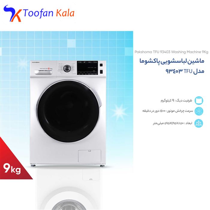 ماشین لباسشویی پاکشوما مدل TFU 93403 ظرفیت 9 کیلوگرم