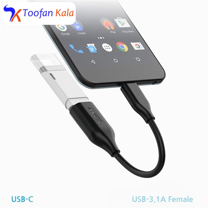 کابل تبدیل USB 3.1 به USB-C انکر مدل A8165 PowerLine به طول 0.08 متر