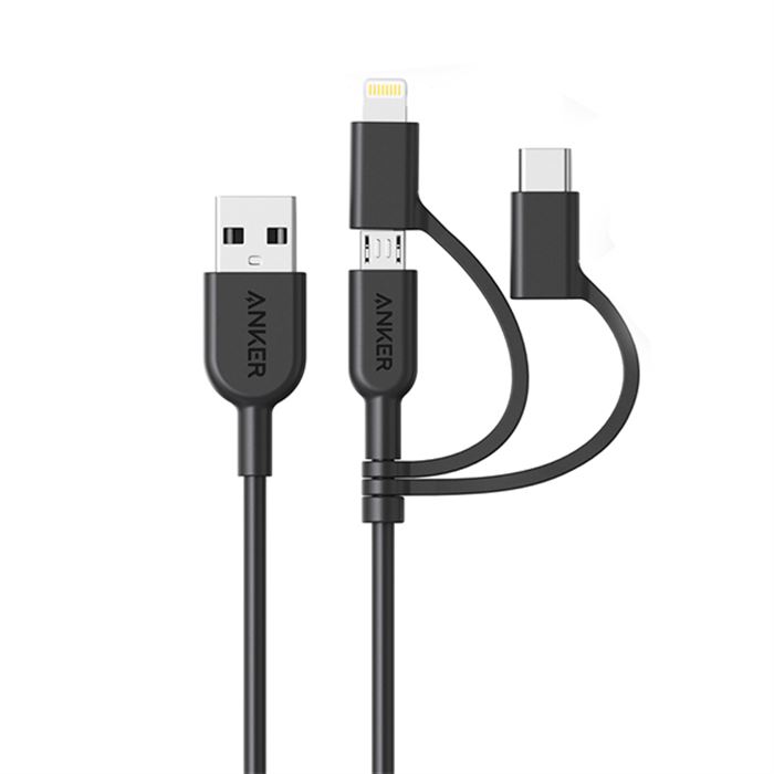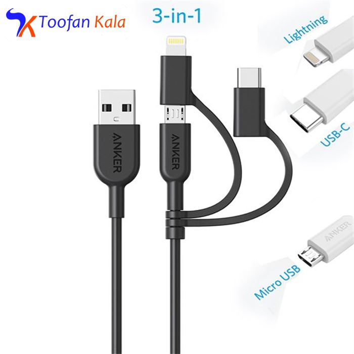 کابل تبدیل USB به لایتنینگ/USB-C/microUSB انکر مدل a8436 Power line2 طول 0.9 متر