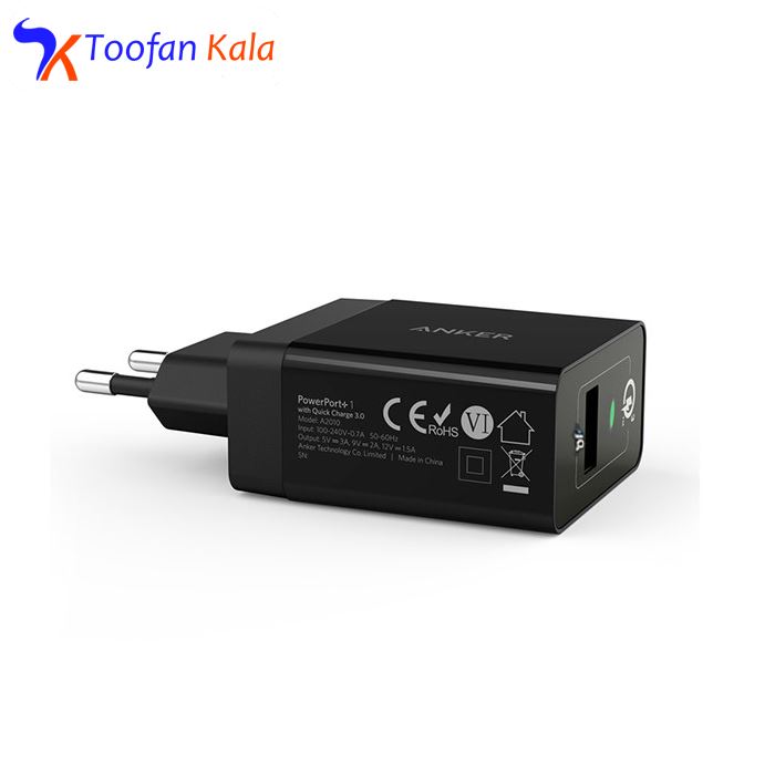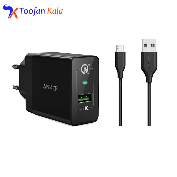 شارژر دیواری انکر 18 وات مدل Quick Charge 3.0 Power Port plus 1 A2013 همراه با کابل micro USB