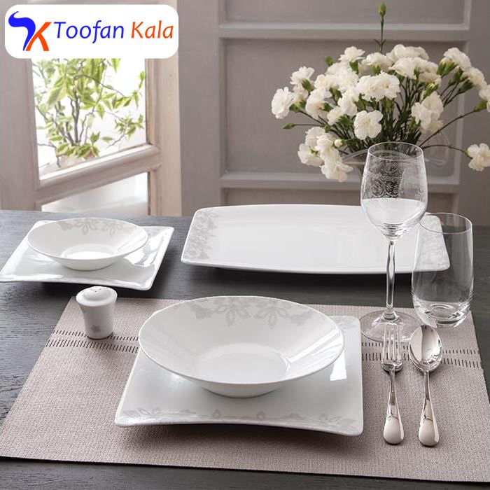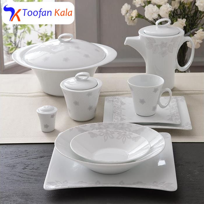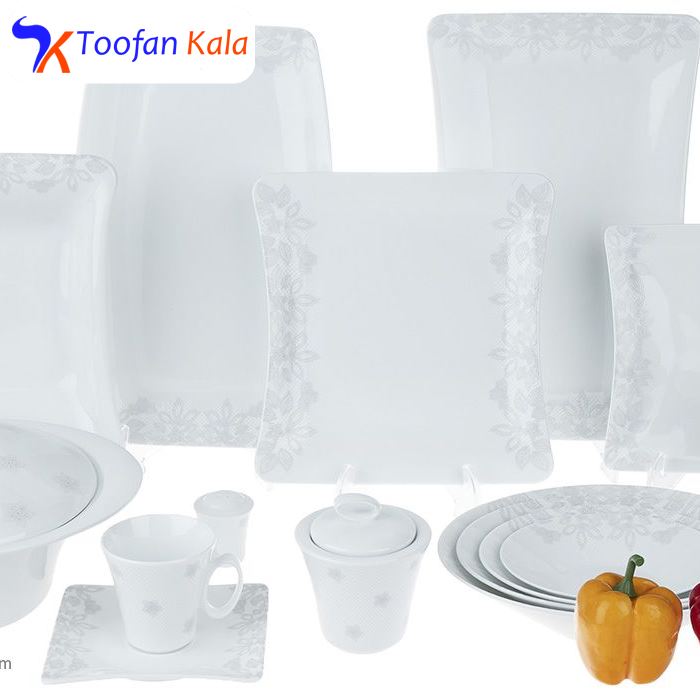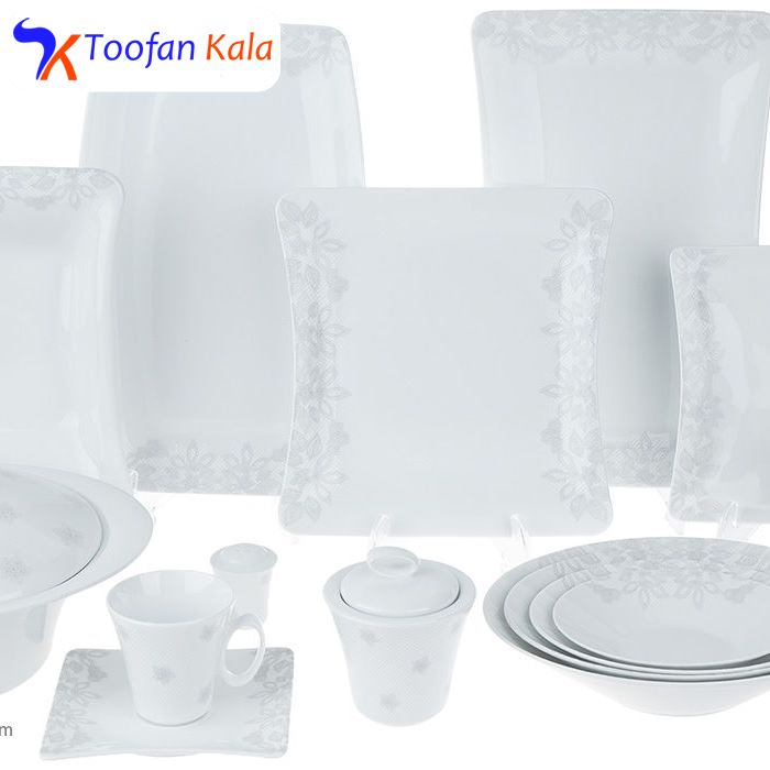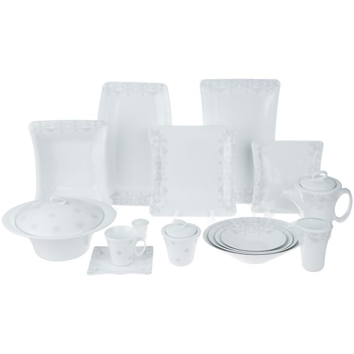 | شامل ظروف | سوپ خوری, ظرف سالاد, دیس, بشقاب غذا خوری, بشقاب خورش خوری, پیش دستی, قوری چای خوری, فنجان, نعلبکی, قندان, شکر ریز, نمک پاش, پیاله |