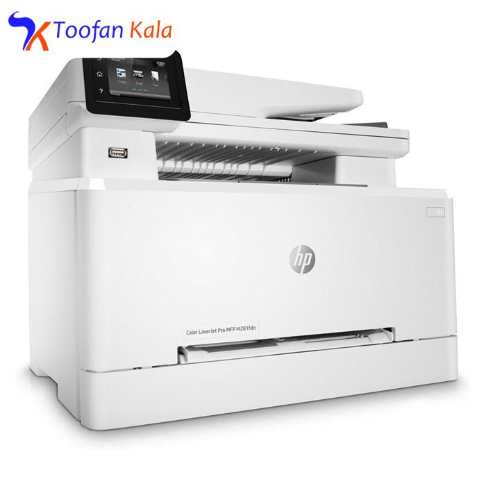 ینتر «LaserJet Pro MFP M281fdn» ساخت شرکت «HP» پرینتری لیزری، رنگی و چندکاره است که علاوه‌بر پرینت، کپی، اسکن و فکس را انجام می‌دهد؛ درنتیجه برای محیط‌های اداری و تجاری کوچک بسیار مناسب است. این چاپگر به نسبت محصولات رقیب، قابلیت‌های متعددی دارد و با توجه به قیمت مناسبش، کالایی باارزش محسوب می‌شود. صفحه‌نمایش3 LCD اینچی تعبیه‌شده در قسمت جلویی، علاوه‌بر کنترل عملکردهای دستگاه قابلیت‌های دیگری مانند صدها App را در زمینه‌ی محتوای قابل‌چاپ ارائه می‌دهد. درگاه USB که زیر صفحه‌نمایش قرار گرفته است به کاربر اجازه می‌دهد تا بدون استفاده از کامپیوتر به‌صورت مستقیم، اسناد خود را چاپ یا اسکن کرده و در فلش‌مموری ذخیره کند. پرینتر قادر است ماهانه تا 40.000 صفحه از اسناد را به چاپ برساند؛ باوجوداین شرکت سازنده پیشنهاد می‌کند برای حفظ سلامت دستگاه و افزایش طول‌عمر آن، بین 150 تا 2500 صفحه چاپ شود. سخت‌افزار دستگاه با 256 مگابایت Memory در عرض 12 ثانیه، اولین برگه را به چاپ می‌رساند و قادر است تا 18 صفحه را به‌صورت رنگی یا سیاه‌وسفید با وضوح 600 dpi چاپ کند؛ همچنین قابلیت چاپ دورو به‌صورت اتوماتیک در این دستگاه تعبیه شده که جزو ویژگی‌های مثبت آن به شمار می‌رود. قسمت کپی در این مدل می‌تواند تا 18 برگه را به‌صورت سیاه‌وسفید یا رنگی با وضوح 300 × 420 dpi کپی کند؛ همچنین می‌توانید اسناد خود را برای کپی، بین 25 تا 400 درصد کوچک یا بزرگ کنید. تونرهای رنگی پرینتر تا 700 صفحه و تونر سیاه‌وسفید تا 1500 صفحه ظرفیت چاپ دارند. بزرگ‌ترین اندازه‌ی چاپ در این مدل برابر با A4 است. قابلیت تغذیه‌ی اتوماتیک اسناد ADF می‌تواند تا 50 برگ را در خود نگه‌داشته و وارد دستگاه کند. سینی کاغذ ورودی دستگاه تا 150 برگ و سینی خروجی هم تا 100 برگ کاغذ را در خود جای می‌دهد.