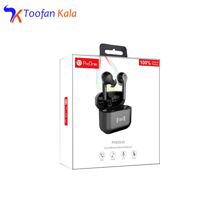 هندزفری بلوتوثی PHB3240 یکی دیگر از محصولات شرکت «Proone» است از کیفیت ساخت بالایی برخوردار میباشد. هندزفری پرووان مدل PHB3240 دارای دو گوشی با فناوری TWS است که درون یک محفظه قابل شارژ قرار دارند. این هندزفری از بلوتوث نسخه 5 بهره میبرد و تا فاصله 10متر برد موثر دارد. جنس بدنه این محفظه از نوع ABS که در مقابل حرارت مقاومت خوبی دارد و جنس باتری از نوع لیتیومی میباشد. محفظه هندزفری دارای ابعادی معادل طول 47، عرض 6/ 53 و ارتفاع 3/25 میلی متر است که وزنی معادل 1/39 گرم و هر کدام از گوشیها نیز وزنی معادل 8/3 گرم دارد. گوشیهای هندزفری به محض خارج شدن از درون محفظه روشن شده و به یکدیگر متصل میشوند. برای اتصال آنها به گوشی موبایل صرفا کافیست بلوتوث گوشی خود را روشن کنید و به راحتی به آن متصل شوید. شارژ شدن هر یک از این گوشیها به مدت 50 دقیقه زمان میبرد و شما تا 4 ساعت به صورت مداوم میتوانید از آنها استفاده کنید. این هندزفریها در داخل یک باکس قرار میگیرند که هم برای نگهداری و هم برای شارژ گوشیها از آن استفاده میشود. بر روی این باکس صفحه LCD طراحی شده که میزان شارژ را نشان میدهد. استفاده از این هندزفری به صورت تاچ است. محفظه شارژ دارای ظرفیت باتری معادل 400 میلی آمپر و هر کدام از گوشیها با ظرفیت 40 میلی آمپر مجهز شده است. از اقلام همراه این هندزفری کابل Type-c USB است که داخل یک جعبه زیبا قرار گرفته است.