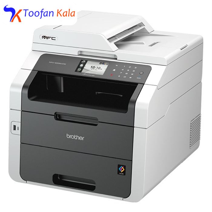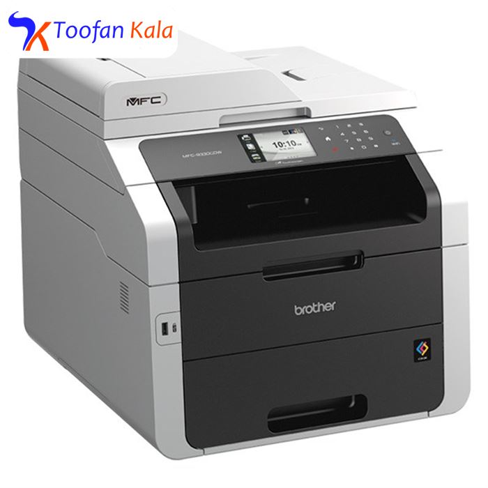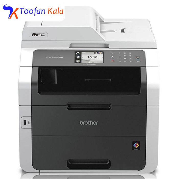 پرینتر چندکارهی «برادر» (Brother) مدل «MFC-9330CDW» دارای قابلیتهای پرینت لیزری رنگی به صورت دورو و اتوماتیک، اسکن رنگی، و کپی و فکس است و و همچنین از ارتباط Wi-Fi سود میبرد و در ابعاد 410 × 483 × 410 و با وزن 23.2 کیلوگرم ارائه میشود. از سختافزار این دستگاه میتوان به پردازندهی 300MHz و حافظهی 192 مگابایتی اشاره کرد. صفحه نمایشی LCD لمسی 9.3 سانتیمتری در این دستگاه تعبیه شده است. سرعت پرینت دستگاه تا 22 برگ در دقیقه با وضوح 600 × 600 dpi است اما میتوانید با تکنولوژی HQ1200 شرکت برادر رزولوشن چاپ را به صورت دیجیتال تا 2400 × 600 افزایش دهید. برای چاپ اولین برگه از زمان آمادهباش کمتر از 16 ثانیه زمان لازم است. چاپ دورو در این پرینتر به صورت اتوماتیک انجام میشود و از ویژگیهای مثبت این دستگاه به شمار میآید. قسمت کپی دستگاه تا 22 کپی را در دقیقه با وضوح 600 × 600 به صورت سیاه سفید و رنگی انجام میدهد و قابلیت کپی 99 برگ از یک صفحه را دارد. همچنین میتوانید صفحات را تا 25% کوچک کرده و یا تا 400% بزرگ نمایید و تا 4 صفحه را در یک برگ کپی کنید. کپی اولین برگه از حالت آماده به کار 19 ثانیه برای کپی سیاه سفید و 22 ثانیه برای کپی رنگی ثانیه زمان نیاز دارد. قسمت اسکن این دستگاه با وضوح 1200 × 2400 و عمق رنگ 24 بیت بر روی بستری شیشهای عمل میکند. در صورت استفاده از تغذیه خودکار اسناد (ADF) اسکن با وضوح 1200 × 600 dpi انجام میشود. وضوح اسکن در حالت دیجیتال Interpolated تا 19200 × 19200 dpi افزایش مییابد. عمق رنگ اسکن انجام شده 24 بیت است. در بخش فکس MFC-9330CDW توانایی ارسال دریافت و ارسال فکس از طریق رایانه را به شما میدهد. سرعت مودم دستگاه برابر با 33.6 Kbs بوده و در صورت اتمام کاغذ دستگاه تا 500 برگ از فکسهای دریافتی را در خود ذخیره میکند. زمان لازم برای ارسال فکس برابر با تقریبا 2 ثانیه است. سینی جلویی کاغذ، ظرفیت نگهداری 250 برگ را دارد و سینی خروجی تا 100 برگ را تحویل میدهد. قابلیت ADF دستگاه تا 35 برگ را پشتیبانی میکند. تونرهای مورد استفاده در این دستگاه شامل تونر سیاه و سفید مدل TN-251BK با قابلیت چاپ 2500 برگ، تونرهای رنگی TN-255C، TN-255M، TN255Y با قابلیت چاپ 2200 برگ هستند. حجم پیشنهادی ماهانه برای چاپ با این دستگاه برابر با 300 تا 1500 برگه است. اگرچه میتوان حداکثر تا 30.000 برگ در ماه با این دستگاه به چاپ رساند. برق مصرفی دستگاه 380 وات و در حالت آماده باش 70 وات و در Sleep Mode 7.5 وات است.