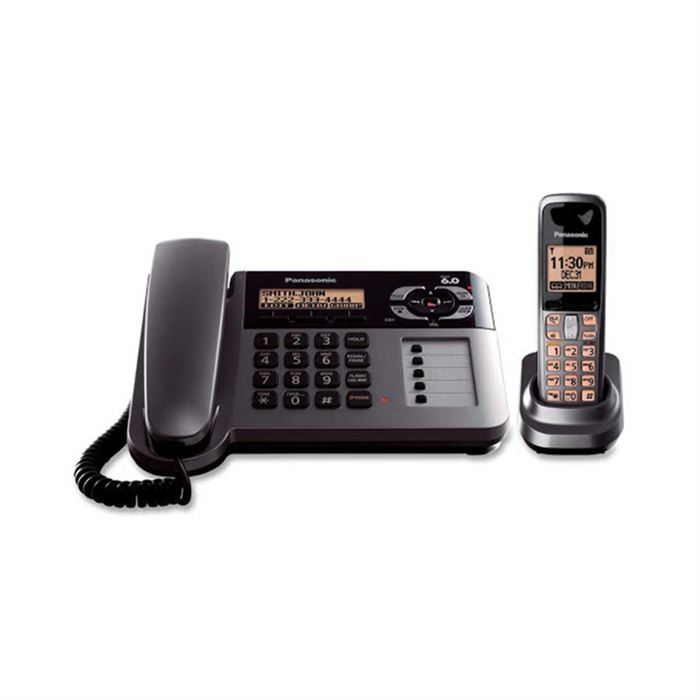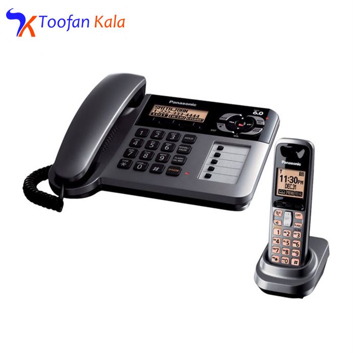 صفحه نمایش بزرگ با نور باعث میشود که به راحتی ببینید چه کسی تماس میگیرد صفحه کلید بزرگ شماره گیری را آسان میکند گوشی سیمی روی پایه |