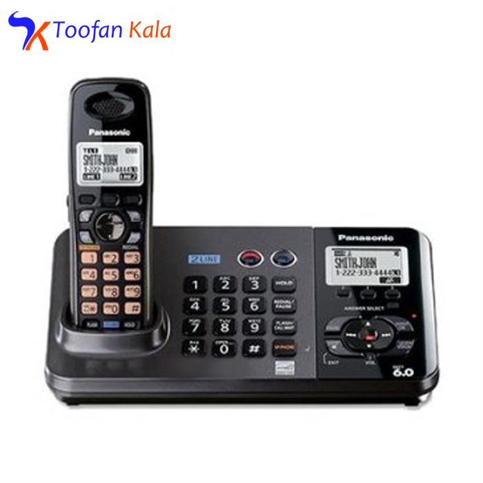 تلفن بیسیم دو خط پاناسونیک مدل KX-TG9385 از جمله مدلهای خوشساخت و فول آپشن پاناسونیک میباشد.که دارای امکاناتی همچون کالر آی دی گویا و اعلام اطلاعات تماس گیرنده ،منشی تلفنی، منو و تقویم فارسی ، حالت شب ، حالت مزاحمت ، دفترچه تلفن با قابلیت ذخیره 600 شماره تلفن، امکان مکالمه سه طرفه ،زنگ هشدار و همچنین امکان افزایش 6 بیسیم به پایه میباشد. نمایشگر این تلفن دارای نور سفید روی گوشی و دارای نمایشگر جداگانه روی پایه دستگاه میباشد و همچنین پد شماره گیر بی سیم آن نیز دارای نور میباشد و در محیطهای تاریک به راحتی قابل شماره گیری میباشد. برد این دستگاه درفضای داخلی تا 50 متر و در فضای بیرونی تا 100 متر میباشد