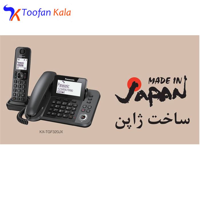 تلفن «KX-TGF320» محصولی حرفهای از شرکت «پاناسونیک» و مناسب برای استفادههای خانگی و اداری است. این تلفن از ظاهری زیبا بهره میبرد. بازهی فرکانسی تحت پوشش تلفن بیسیم KX-TGF320 برابر با 1.88 – 1.9 گیگاهرتز است. به یاری فرکانس 2.4گیگاهرتزی این تلفن، نویزی در دستگاههایی مانند مودمهای بیسیم یا تلویزیون ایجاد نخواهد شد. صدای منتقلشده توسط این تلفن بسیار باکیفیت و واضح است. KX-TGF320 از سه قسمت شامل تلفن، پایه و گوشی تشکیل شده است. این پایه وظیفهی شارژ گوشی را بر عهده دارد. ابعاد کلیدها بزرگ طراحی شدهاند تا سالمندان نیز در استفاده از آن با مشکل مواجه نشوند. شرکت پاناسونیک تلفن و گوشی تلفن بیسیم KX-TGF320 را به نمایشگرهای 3.4 و 1.8 اینچی، برای نمایش شماره، تجهیز کرده است. این دو نمایشگر میزان شارژ موجود در تلفن، میزان آنتندهی و شمارههای دریافتشده را نمایش میدهند. بهمنظور دید بهتر، میتوانید صفحهنمایش را به بالا یا پایین خم کنید. تلفن KX-TGF320 از قابلیت دفترچهی تلفن هم بهره میبرد و ذخیرهی 100 مخاطب را امکانپذیر کرده است. تلفن و گوشی تلفن پاناسونیک مدل KX-TGF320 انرژی مورد نیاز خود را از طریق دو باتری Ni-MH سایز نیمقلمی AAA تامین میکنند. به کمک این باتریها میتوان تا 17 ساعت به مکالمهی صوتی پرداخت. مدتزمان شارژدهی در حالت آمادهبهکار برابر با 330 ساعت است. از ویژگیهای مهم این تلفن پاناسونیک میتوان به کلید مسدودکردن شماره و سه کلید مجزا برای تماس سریع با مخاطبان (اختصاصدادهشده به کلید) اشاره کرد.