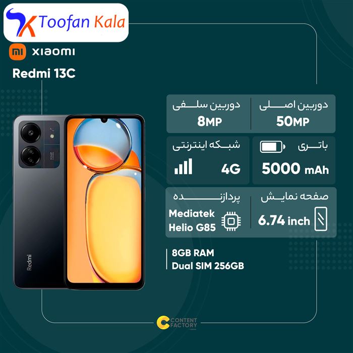 گوشی موبایل شیائومی مدل Redmi 13C دو سیم کارت ظرفیت 256 گیگابایت و رم 8 گیگابایت